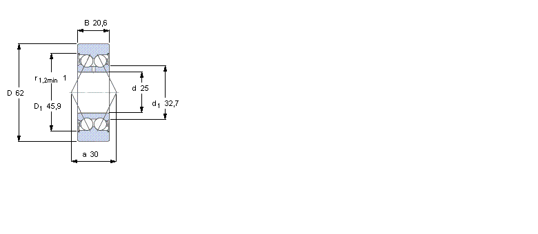 | 62 | 25 | 20,6 | 19,9 | 12,2 | 0,52 | 15,3 | 22 | 6000 | 0,32 | 305705 C-2Z | |