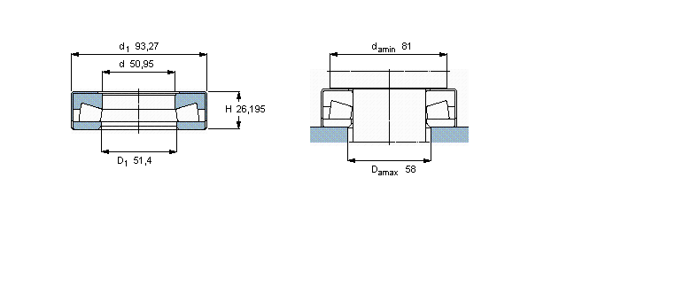 | 圓錐滾子推力軸承, 單向 | ||||||||||