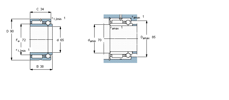 | 65 | 90 | 38 | 60,5 | 118 | 9,96 | 19,2 | 14,6 | 0,816 | 5600 | 6300 | 0,64 | NKIB 5913 | |